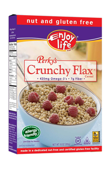 Enjoy Life sent me these samples. It looks like the Crunchy Rice, but it is made with whole sorghum flour and ground flax seed, instead of rice flour and rice bran. It has 425 mg of Omega-3’s and 6 grams of fiber in each serving (that’s 24% of your daily fiber). When eating it plain (or just with milk), there is a slight flax-y taste (which is only bad if you don’t like the taste of flax at all – I happen to like it). When eaten with yogurt, however, I could not detect the flax.
