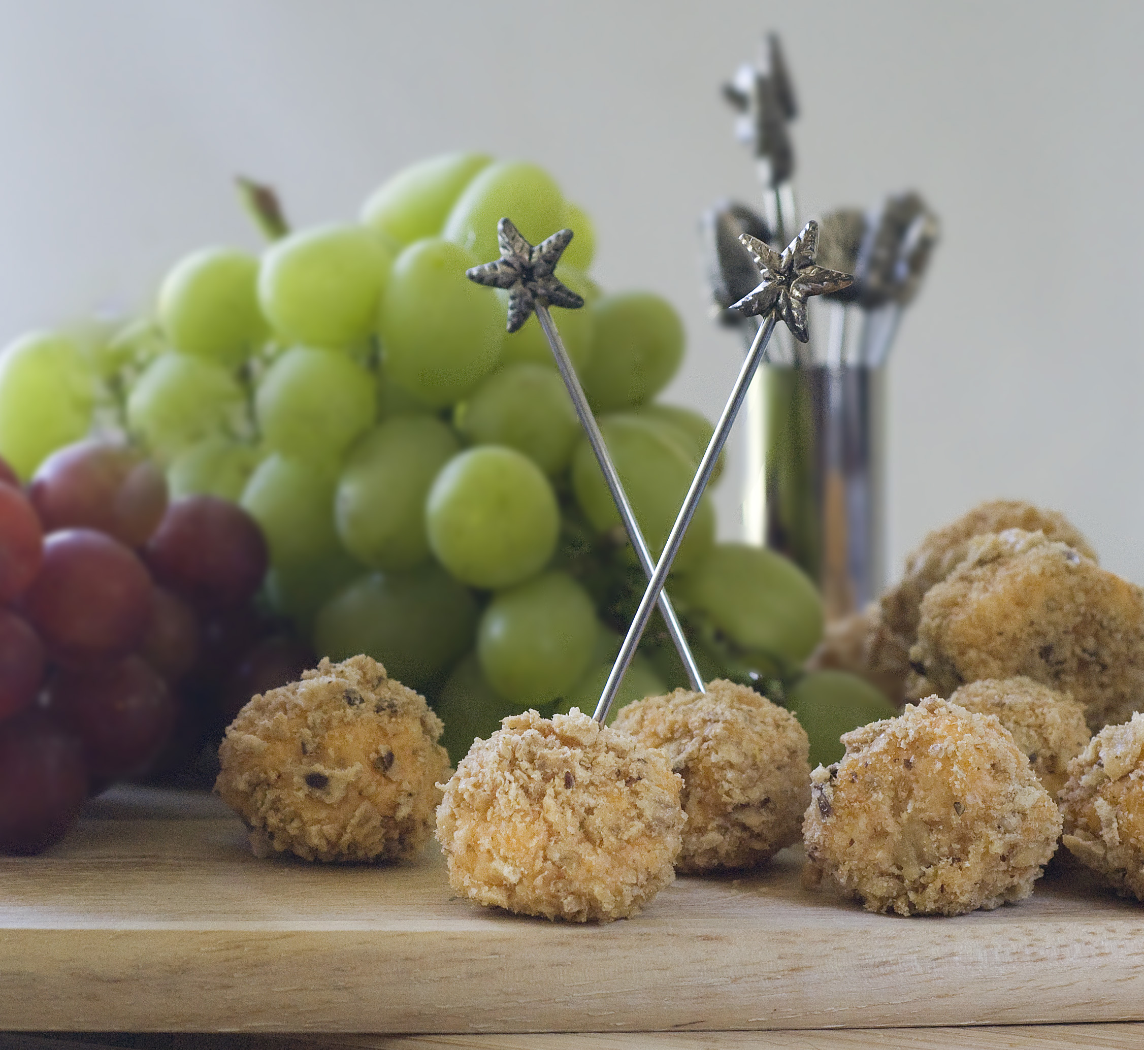 Place crackers in food processor and pulse several times until ground into coarse crumbs.  Pour the crumbs into a plate and wipe out the food processor.  Add the remaining ingredients to food processor and process until fully combined.  Roll tablespoonfuls of the cheese mixture into balls (a mini ice cream scoop works well) and then roll the balls into the cracker crumbs gently pressing the crumbs into the cheese.  Refrigerate until firm, about 1 hour.