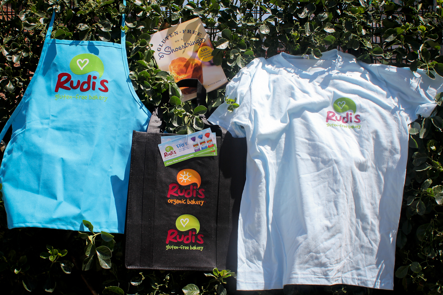 Rudi’s wants you to celebrate National Celiac Awareness Month, too, so they are giving away one cool prize package to a reader. It includes a cute apron (I love aprons), Gluten-Free on a Shoestring by Nicole Hunn, Rudi’s Gluten-Free coupons, a reusable shopping bag and bread clips.