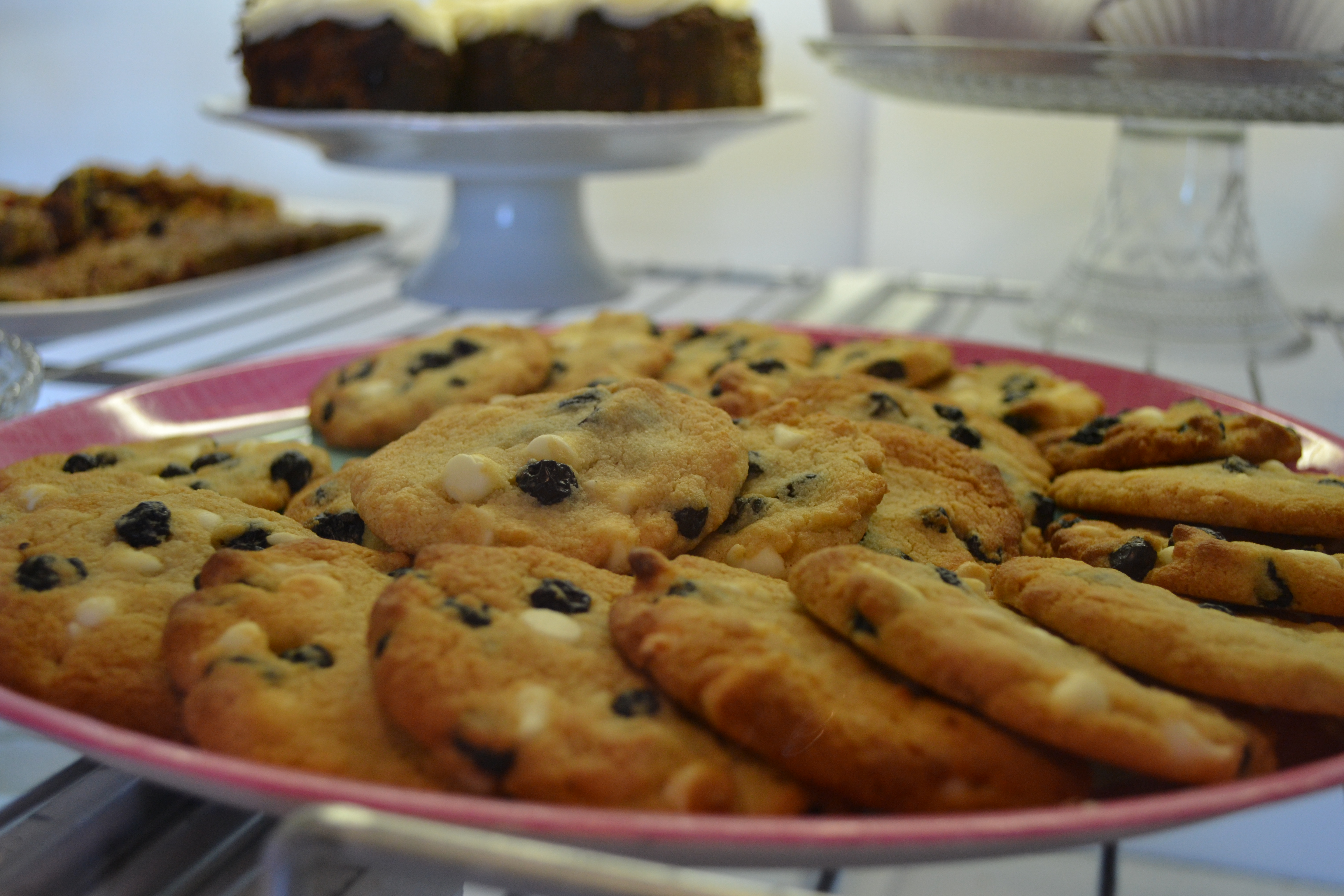 Monica had really been looking forward to getting some blueberry hand pies, which she described to me as sort of like a “fried pie.”  Casey wasn’t able to make any Saturday because they are very labor-intensive and her husband had headed down to the GIG of North Texas meeting to deliver goodies.  But since Monica had sent her a message beforehand that she was looking forward to those, she made sure there was something extra special.  Enter the blueberries and cream cookies.  Oh. My. Gosh.  I never wanted to leave.  As a matter of fact, we almost didn’t.  We enjoyed 2 1/2 hours of relaxing and listening to people come and go.  It was quite busy!  The longest Casey had to speak to us without other customers in the store was 6 minutes.  Her breads, cheddar biscuits, and cinnamon rolls had all been bought out before we arrived, even though we were there 45 minutes after it opened.