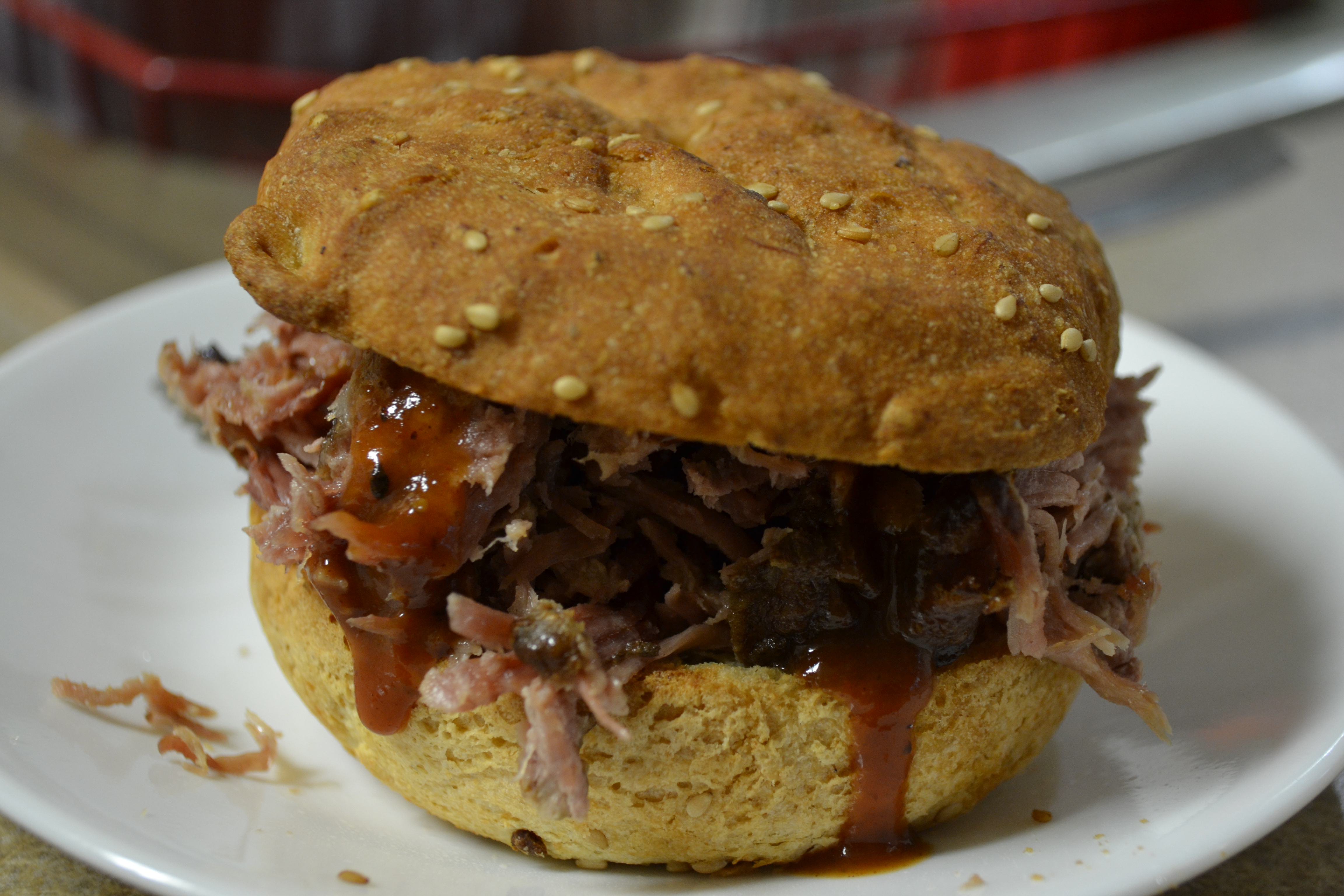 It is not often I have a barbecue pulled pork sandwich on a bun.  In fact, it’s probably been years since I had one.  One of the last ones I can remember having, the bun didn’t taste very good and it kept falling apart.