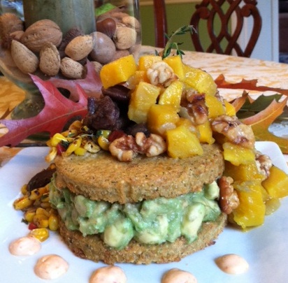 QRUNCH and Avocado Terrine with Autumn Vegetable Sauté – a substantial and colorful main course