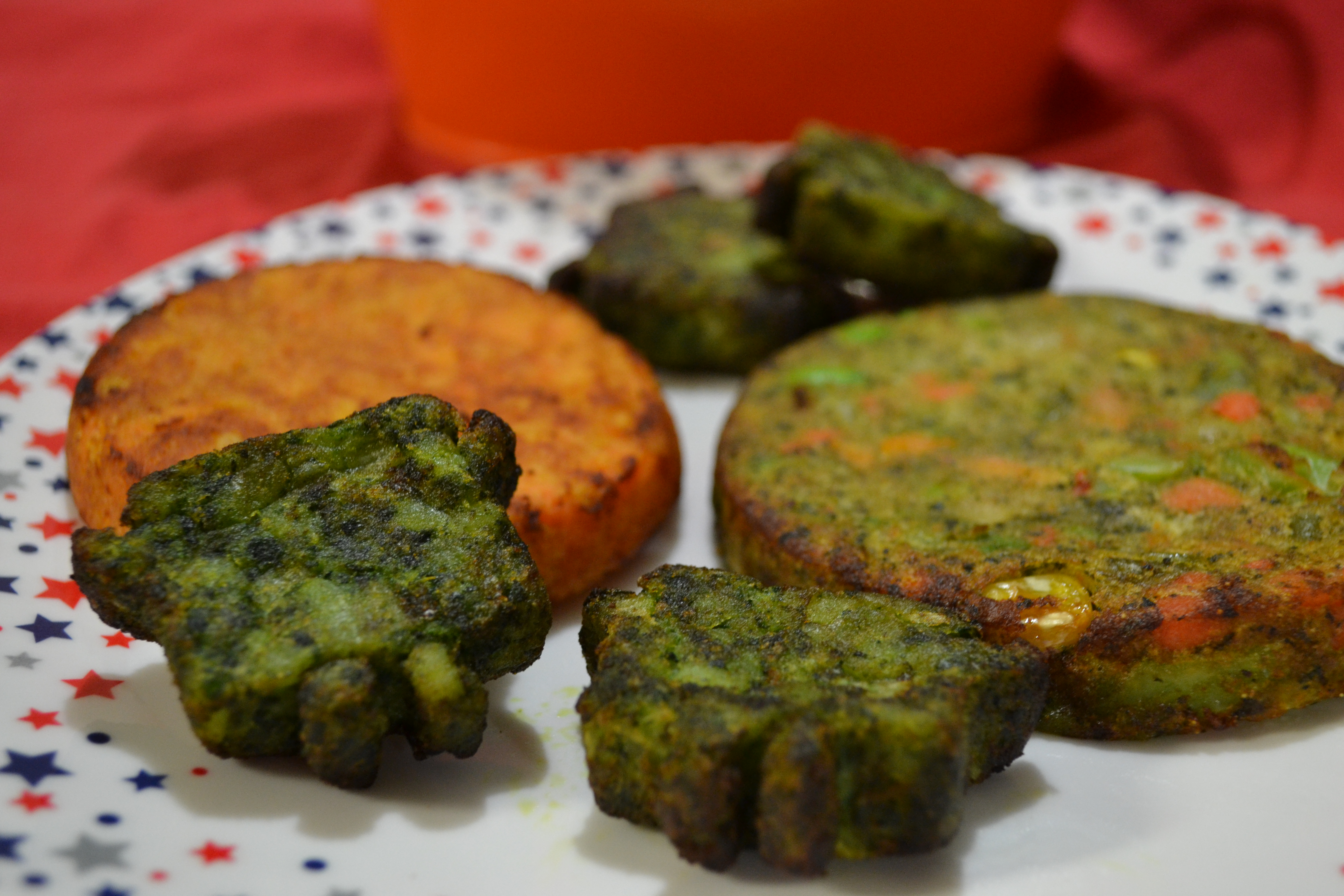 Sweet Potato Pancakes, Spinach Littles, California Veggie Burger