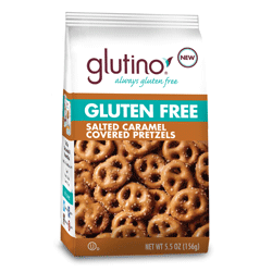Let’s start with a huge shout out to Glutino!  They had a bunch of cool products out for Christmas that I never got around to telling you about (candy cane yogurt pretzels, snowflake pancakes…).  Some of their cool new products include pretzel chips, buffalo pretzels, and salted caramel pretzels.
